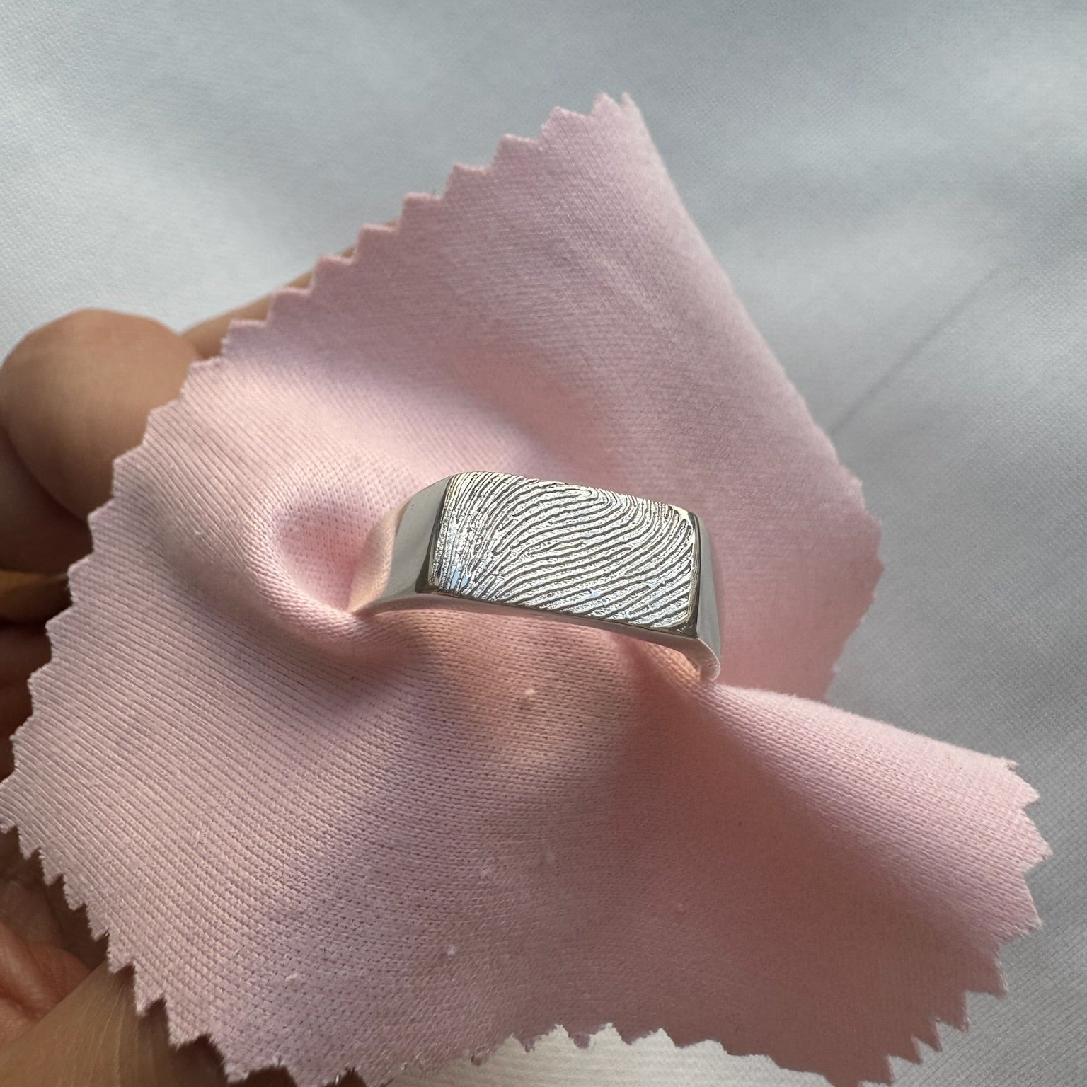 Your finished piece will look exactly as the wax does in print, shape and size so be sure to love how it looks before sending it back to us. This excludes the Signet Ring and Band Ring, which are slightly manipulated to suit the style. All measurements will depend on how the fingerprint is pressed into the wax, dictating the overall size. We recommend sticking to the size guidelines provided on the information card to create the best quality impressions. If your band ring impression is longer than the guide, we may need to trim the print to provide the best quality piece.