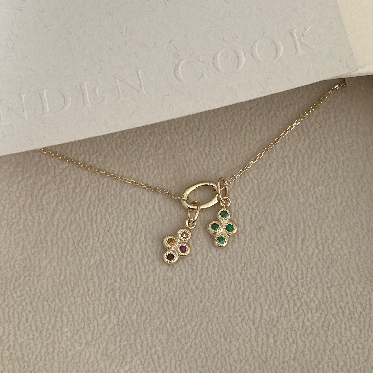Solid 9k Gold with four 1.5mm precious stones of your choice. Your stone selection will be set clockwise from the top stone. 9mm x 7mm with a 6mm link. Birthstone Details/ The quoted price is based on chain lengths up to 50cm. Lengths above 50cm will incur an additional fee, which will be invoiced after the order has been received. Add an Impression pendant to your piece here.